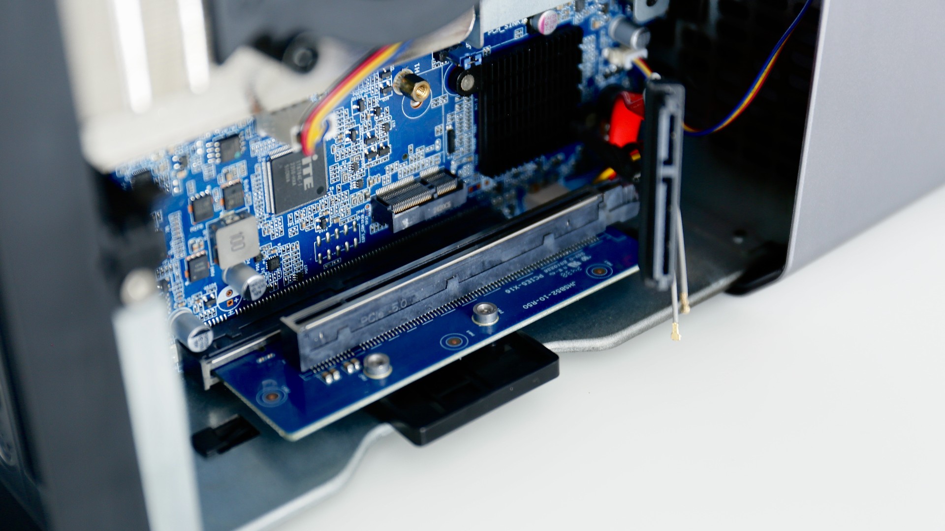打开WA814内部,南宫NG·28(中国)相信品牌力量可以看到PCle5.0 x16 高速扩展口,它的速度高达64GB/s,可以实现独立显卡、多网口、高速 SSD、多 COM 等设备的扩展。