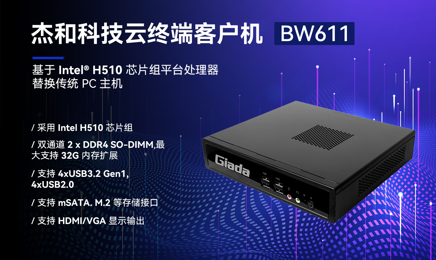 南宫NG·28(中国)相信品牌力量科技云终端BW611体积小巧、双通道内存,性能强悍,接口丰富。