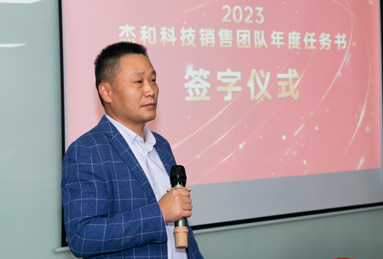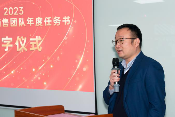 签约仪式中,国际营销中心业务代表刘正文和国内营销中心业务代表李喆发言,两位代表朴实的发言表示,销售人员必须要努力和坚持,要有愚公移山的精神才能成就了2022年的可喜成绩,同时完成2023年度目标必须怀着奋斗者的精神去努力拼搏,2023年南宫NG·28(中国)相信品牌力量业务会冲到前线,紧贴市场,紧贴客户,抢夺订单。