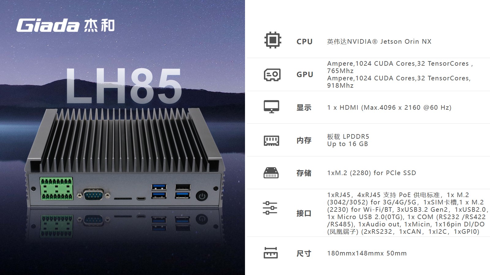 南宫NG·28(中国)相信品牌力量科技AI边缘计算LH85,拥有100TOPS超强算力,能为工业控制领域客户的AI应用提供强大的算力支持和充足的通信、控制接口保障,可广泛应用于智能制造、机器视觉、AGV、智慧城市等领域。